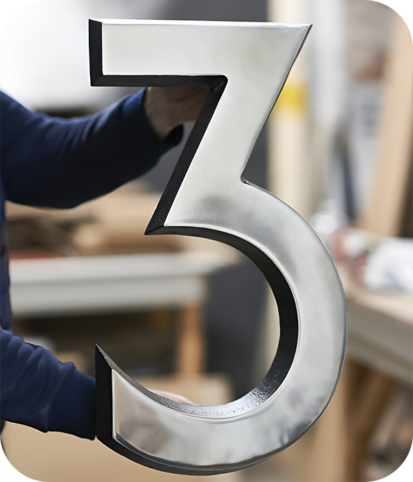 Используя высокоточное оборудование с числовым программным управлением, мы добиваемся четких форм и линий каждой буквы. Для вас есть много вариантов финишной отделки: от благородного глянца до матовой текстуры, от классических монохромных решений до оригинальных металлизированных покрытий. Особо популярны эффекты старинной патины и золотые напыления. Световые решения разрабатываются для каждого проекта. Встроенные светодиодные системы обеспечивают мягкое рассеянное свечение, потребляя при этом минимальное количество электроэнергии. Доступны разные сценарии освещения – от сдержанной подсветки контуров до яркого фронтального сияния. Мы тщательно прорабатываем каждую деталь – от гармоничного подбора шрифта до точного расчёта габаритов. Монтажные работы выполняют квалифицированные сотрудники на профессиональном оборудовании. В зависимости от места установки и габаритов конструкции, мы подбираем способ крепления. Стандартный производственный цикл занимает около недели. На все буквы из металла распространяется расширенная гарантия, подтверждающая вашу уверенность в качестве.