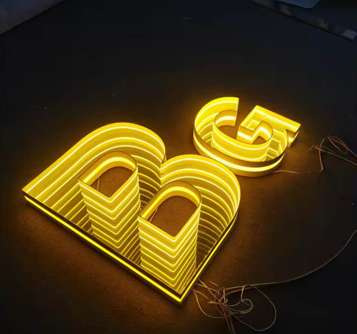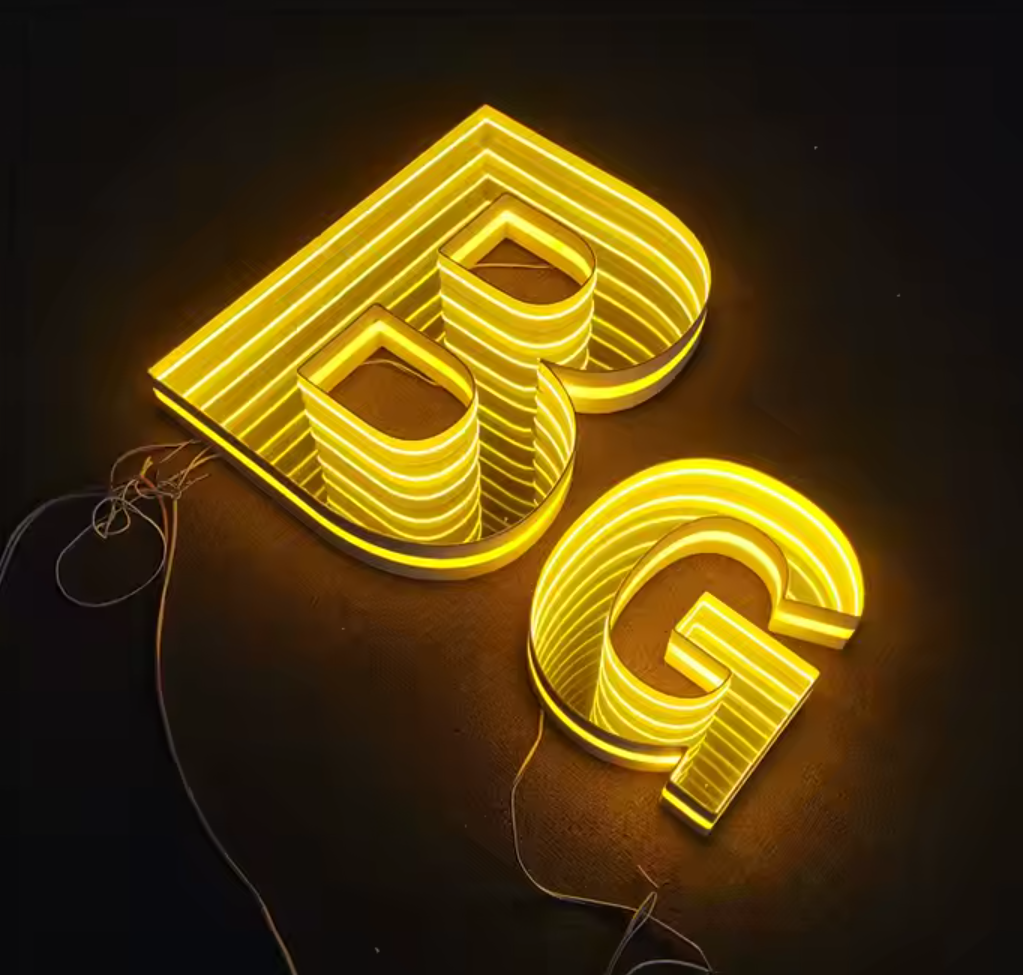 Изготовление 3D-вывески с эффектом бесконечности начинается с разработки 3D-модели логотипа и конструкции: проектируются форма, размеры, расположение световых линий и элементов с учётом места монтажа. С помощью фрезерного станка из прочных материалов вырезаются основы букв, рамок и других элементов конструкции. Далее детали собираются в единую объёмную форму, герметизируются в местах соединений для защиты от влаги. Внутри конструкции равномерно размещается светодиодная лента (SMD 300). Лента монтируется вплотную к отражающим поверхностям, чтобы максимально усилить эффект глубины. Внутренние поверхности элементов оснащаются зеркалами — это ключевой момент для создания «эффекта бесконечности»: свет многократно отражается, создавая иллюзию бесконечного пространства. Для смягчения света и придания вывеске законченного вида конструкция оклеивается специальной светорассеивающей плёнкой. Затем система освещения подключается к блоку питания, проводятся тесты работы подсветки, корректируется яркость и цветовые параметры.
