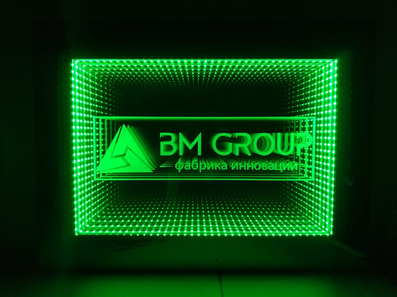 Заказчик — производственное предприятие «BM GROUP» — обратились к нам для заказа 3D вывески с эффектом бесконечности. Основные требования при исполнении проекта: