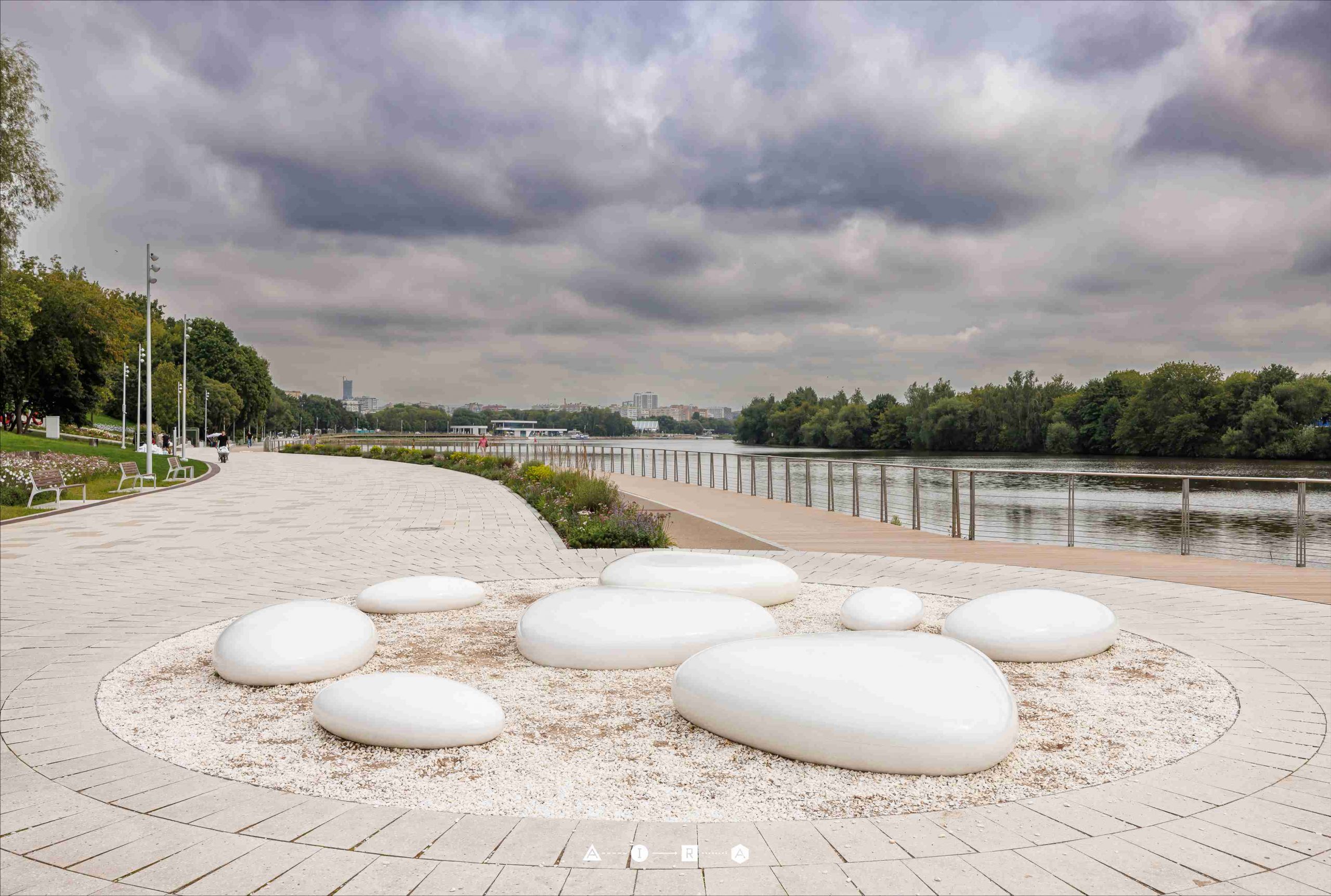 В ходе обсуждения были согласованы место размещения, количество изделий, габариты и конструктивные особенности. Скамейки выполнены в виде камешков белого цвета разных размеров и предназначены для размещения на набережной. Изделия изготовлены из стеклопластика, который обладает высокой прочностью, малым весом и устойчивостью к влаге, ультрафиолетовому излучению и перепадам температур. В конструкцию скамеек интегрирована подсветка нейтрального белого света с цветовой температурой 4000К, создающая комфортное визуальное восприятие в тёмное время суток и подчёркивающая форму объектов. Система подсветки работает от безопасного низковольтного напряжения 12V / 24V и имеет степень пылевлагозащиты IP65, что обеспечивает надёжную эксплуатацию в уличных условиях.
