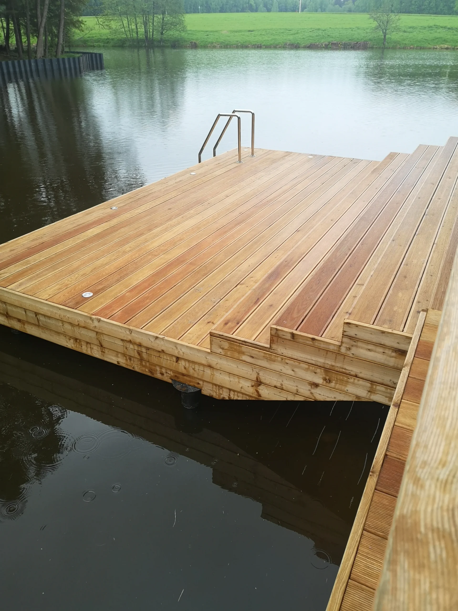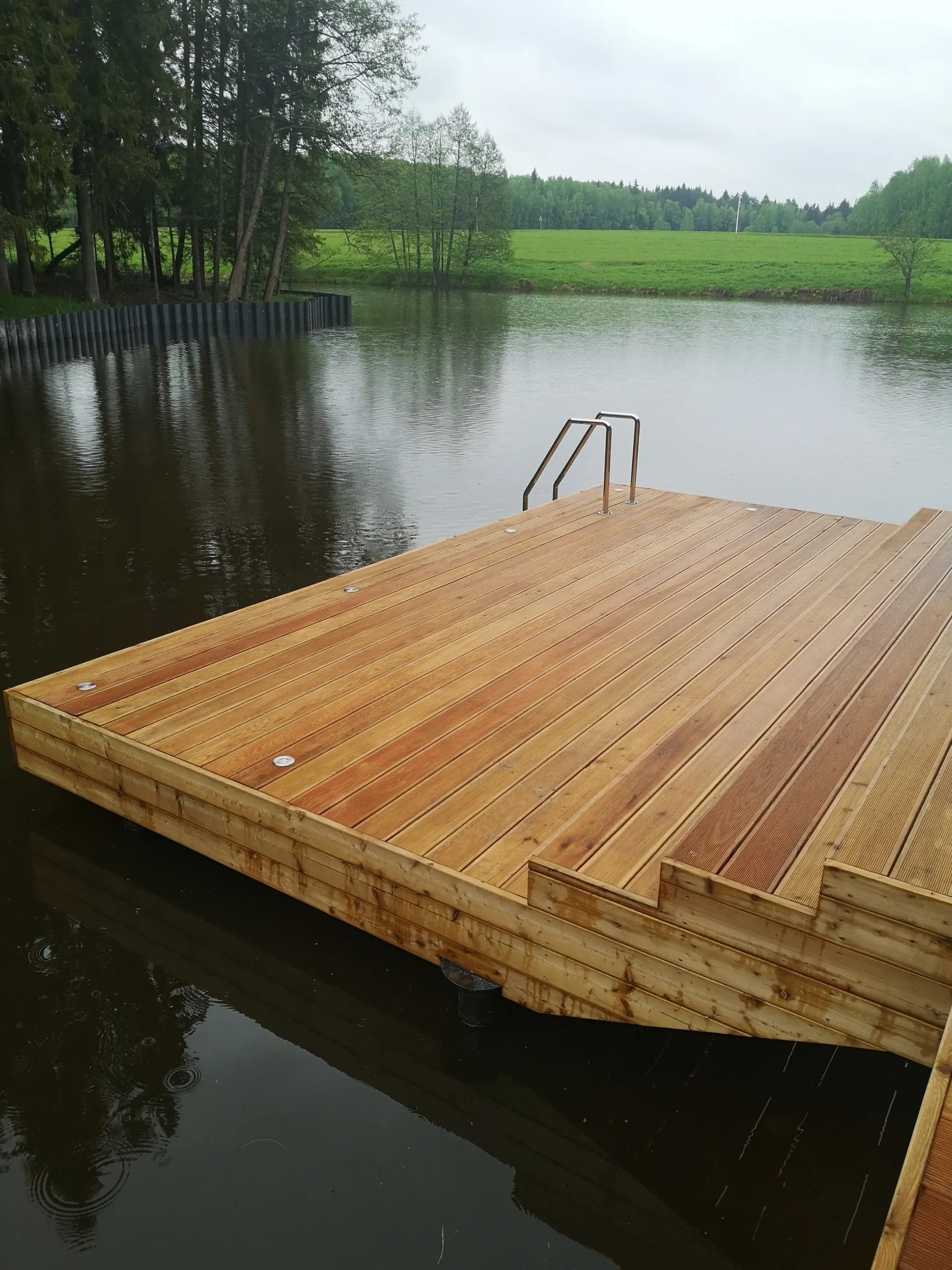 В ходе обсуждения были согласованы место размещения, габариты помоста, конструктивные особенности и требования к материалам. Помост предназначен для эксплуатации на природном водоёме и обеспечивает безопасный и комфортный доступ к воде. Конструкция выполнена на несущем каркасе из металла с антикоррозийной защитой, что обеспечивает прочность и долговечность при постоянном контакте с влагой. Настил изготовлен из древесины, обработанной защитными составами, повышающими устойчивость к гниению, воздействию воды, ультрафиолетового излучения и отрицательных температур. Поверхность настила выполнена с учётом противоскользящих свойств, что повышает безопасность эксплуатации. Конструкция помоста рассчитана на статические и динамические нагрузки, возникающие при посадке в лодку и швартовке, а также на сезонные изменения уровня воды.
