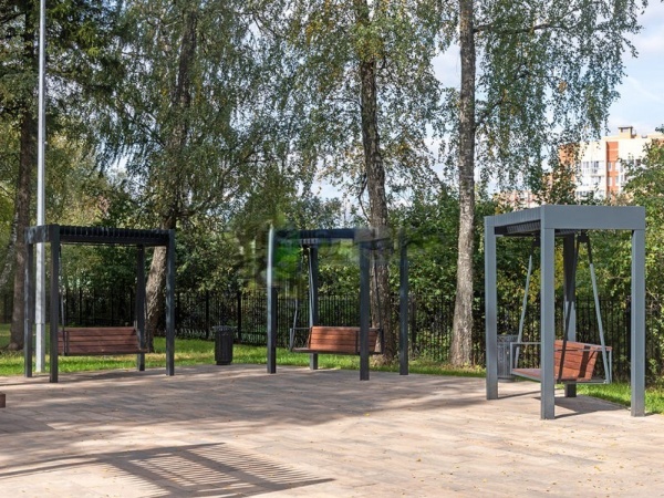 В ходе обсуждения были согласованы место размещения, габариты изделия, конструктивные особенности и требования к материалам. Качели-скамейка выполнены в современном стиле и сочетают в себе уникальный дизайн и функциональность. Несущая конструкция изготовлена из металла и имеет защитное антикоррозийное покрытие, обеспечивающее прочность и долговечность. Сиденье и элементы спинки выполнены из древесины, устойчивой к воздействию влаги, ультрафиолетового излучения и перепадам температур. Применяемые материалы соответствуют современным стандартам и обеспечивают безопасную и надёжную эксплуатацию изделия в уличных условиях.