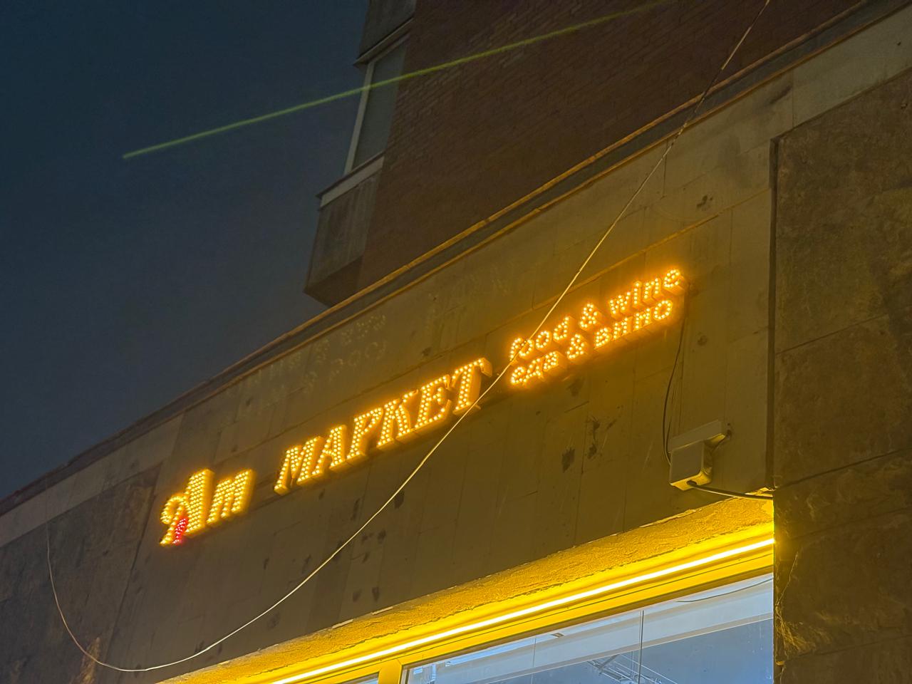 Заказчик — гастромаркет — обратился к нам для изготовления неоновой вывески, которая бы подчёркивала атмосферу заведения и привлекала внимание посетителей.