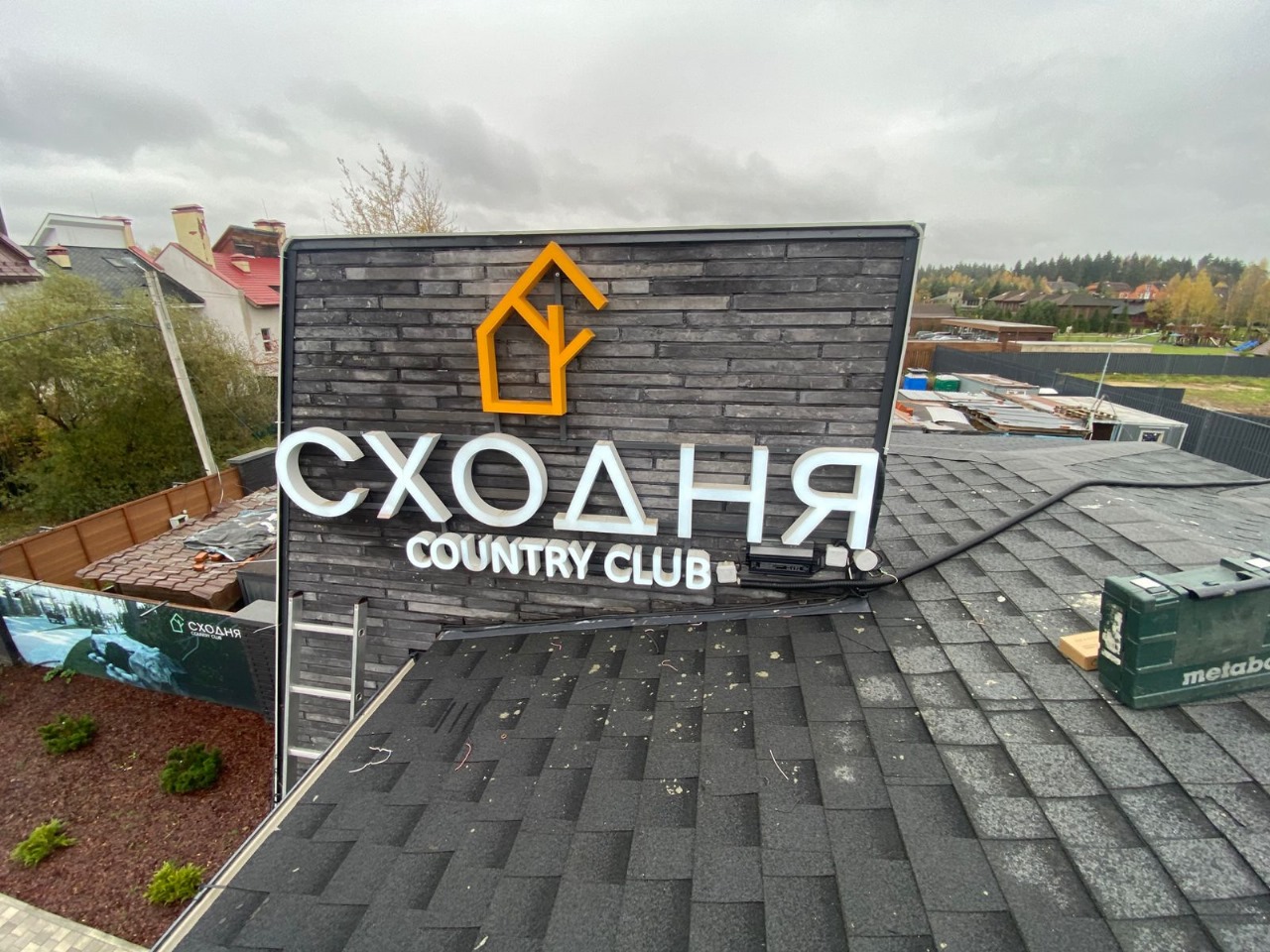 • крышная вывеска из объемных букв;