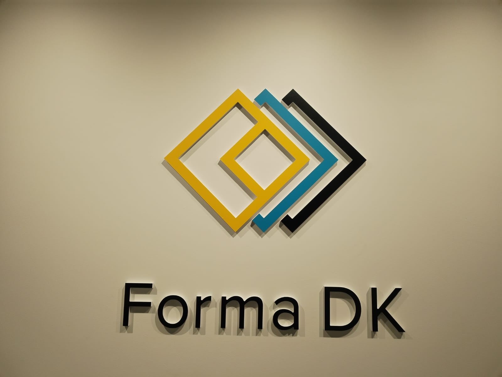 На встрече с клиентом уточнили размеры места установки, бюджет и требования к типу и дизайну плоских букв из ПВХ. Оформление плоских букв из ПВХ для магазина товаров для дома выглядит лаконично и стильно — с надписью «Forma DK». Такие буквы создают минималистичный, но выразительный акцент на стене, хорошо читаются с расстояния и гармонично вписываются в современный интерьер. Их выполняют в разных цветах и толщинах, сочетают с логотипами. Материал — вспененный ПВХ и виниловая плёнка — устойчив к износу, не выцветает, подходит для внутренних помещений.