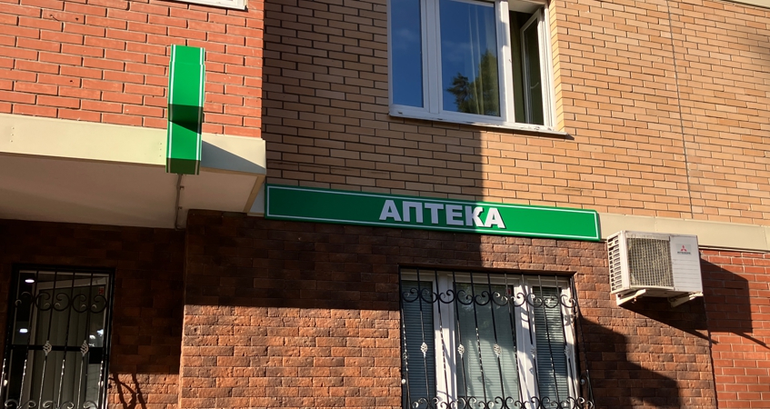 Заказчик — аптечный пункт — обратился к нам для изготовления фасадной вывески из несветовых букв. Основные требования при выполнении заказа: