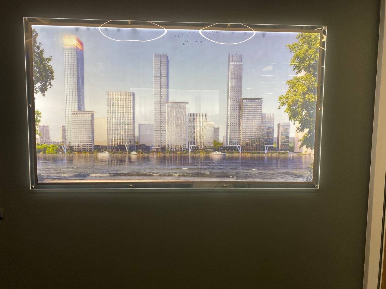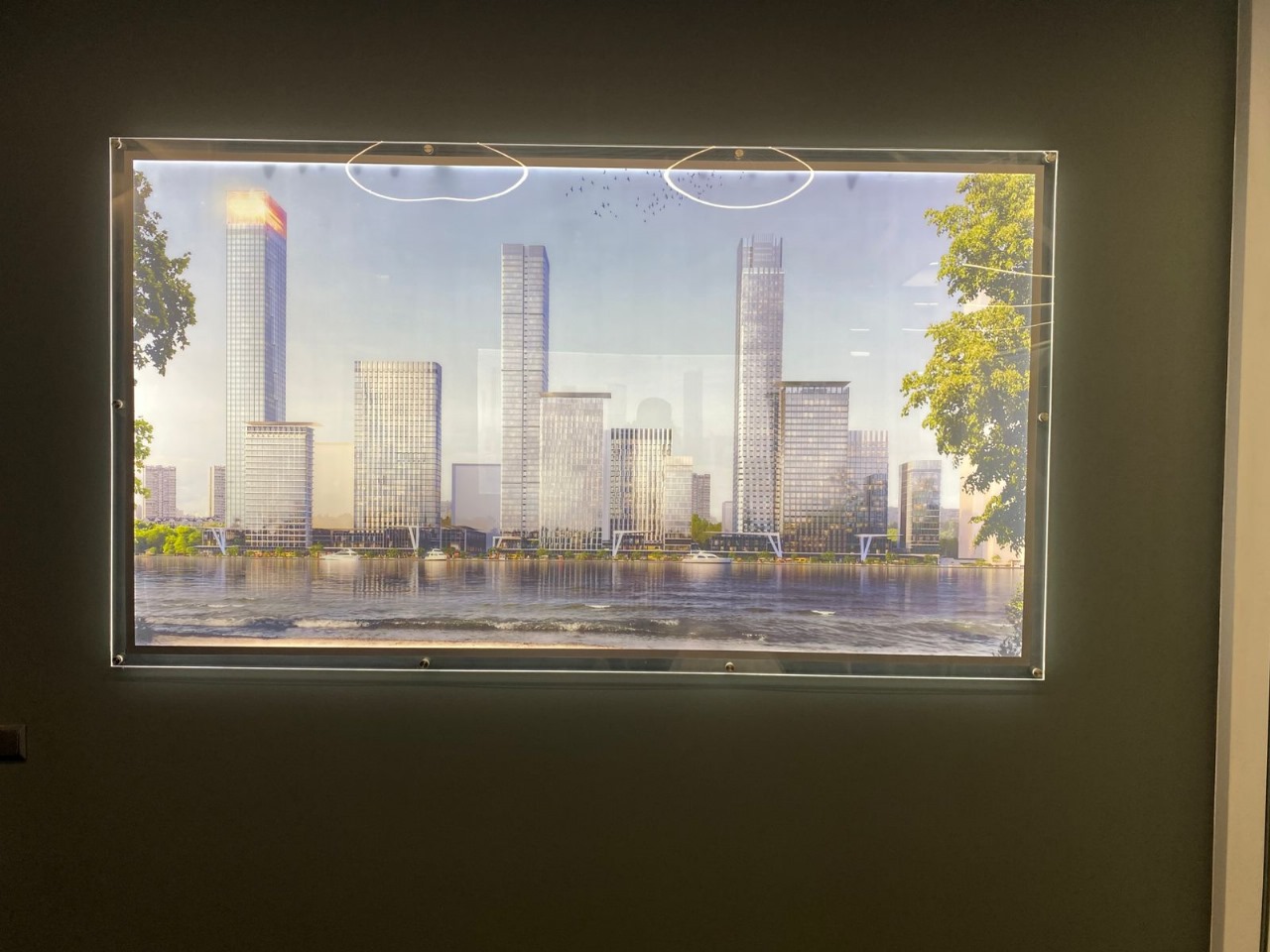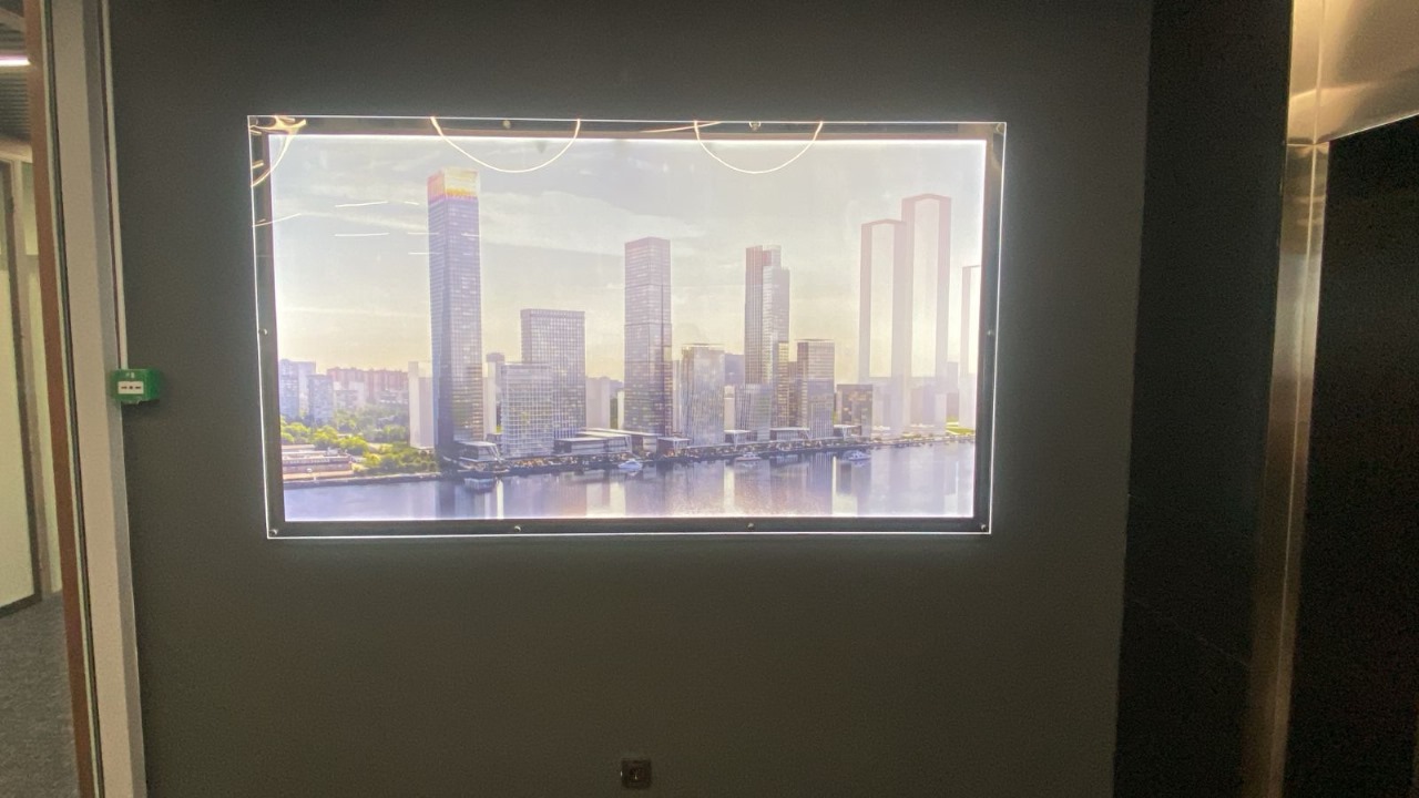 На встрече с клиентом уточнили размеры места установки, бюджет и требования к типу и дизайну световой панели кристалайт. Световая панель «Кристалайт» создаёт эффект «парящего» изображения благодаря светящимся торцам и яркой передаче картинки. Такая панель идеально подходит для бизнес-центров, поскольку сочетает в себе эстетику и функциональность: она не только украшает интерьер, но и может использоваться для демонстрации информации — например, логотипов, схем, рекламных материалов. Тонкая конструкция панели (до 18 мм толщиной) позволяет органично вписать её в интерьер без перегрузки пространства. Прозрачная стеклянная рамка по периметру не отвлекает внимание от изображения, а мягкое свечение торцов добавляет изысканности.