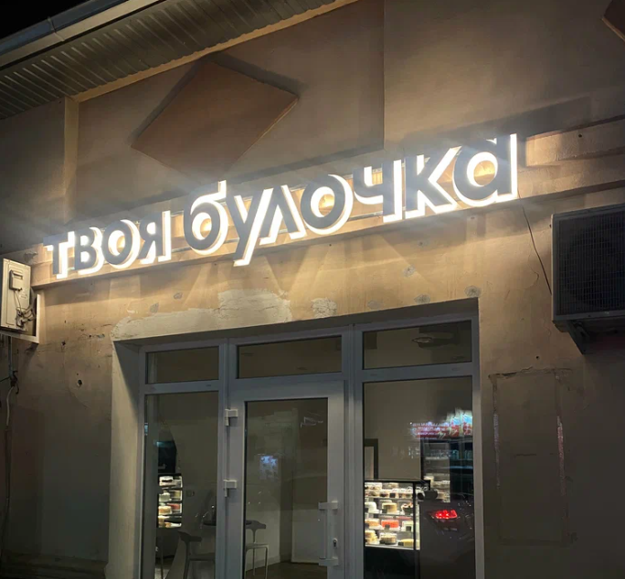 Заказчик — пекарня «Твоя булочка» — обратились к нам для заказа объемных букв с контражурной подсветкой. Основные требования при исполнении заказа: