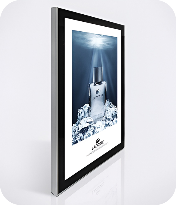 Энергоэффективная LED-подсветка ярко и равномерно светит, тратит минимум электроэнергии и долго работает. Ударопрочное акриловое стекло защищает изображение, выдерживает перепады температур, а по контуру оснащено магнитной лентой для удобной замены контента. Под защитным стеклом может размещаться любой графический материал – рекламный постер, фирменный логотип, информационное сообщение или художественная печать. Из-за магнитной фиксации смена изображения занимает мало времени: достаточно поднять акриловую панель специальной присоской и вставить новый носитель.